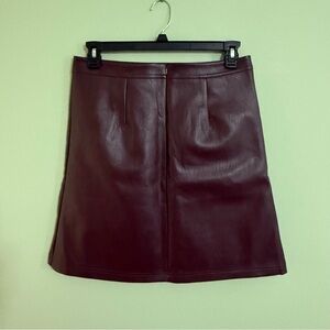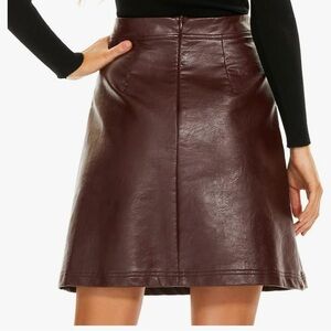 Ginasy Faux leather, a line, wrap , high waisted miniskirt burgundy