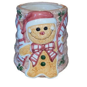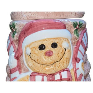 Preowned Used Ginger Bread Man Cookie Jar -World Bazaar - Beehive Christmas Holiday Decor. There are no chips or cracks noted. In good preowned condition, ready for use!