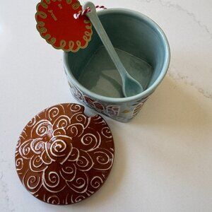 Ginger Ceramic Stoneware Sugar Bowl 3pc SET by Anthropologie NWT