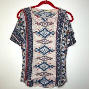 Ginger G Anthropologie Aztec Print HiLo Knit Style Cold Shoulder Top Size Small