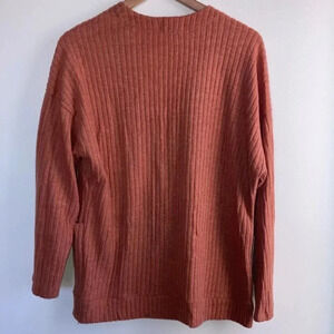 Ginger G Cardigan Medium Terracotta Button Front V-Neck Ribbed Sweater Pockets