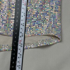 Ginger G Sequin Top Sz S Silver Metallic Rave Club Disco Glitter NYE Maximalism Sexy Chic Shimmer Shiny Iridescent