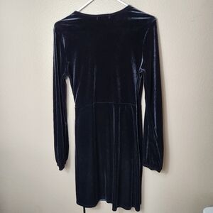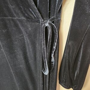 Ginger G Womens |M| Black Velvet Knee-Length Long Balloon Sleeve Wrap Dress