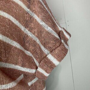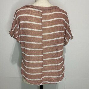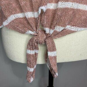 Ginger G Women Small Blush Pink Knot Front Short Sleeve Open Mesh Striped EUC.