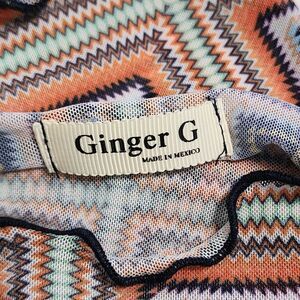 Ginger G Y2K disco sheer multicolor geometric print long sleeve top M