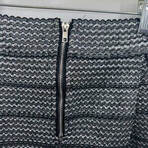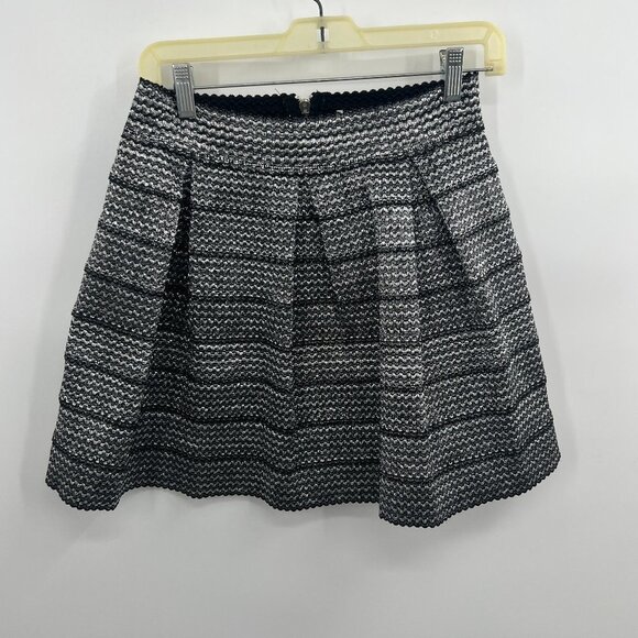 Pretty pleated black skirt with silver thread throughout Waist 26" Length 16.5" 100% Polyester Gently Worn