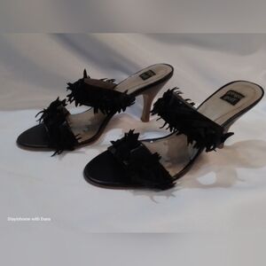 Ginger Goff BETINA Leather BLACK Kitten Heel Sandals sz 7.5