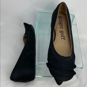 This is a beautiful pair of Ginger Goff Black Satin Ballet Flats