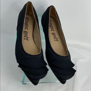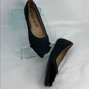 Ginger Goff Sz 9 Black Satin Pointed Toe Flats
