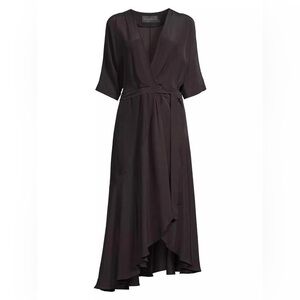 Ginger & Smart Beloved Midi Wrap Dress Silk Wedding Guest Mother of the Bride Size 12. Color is a deep brown with a very subtle purple tint.