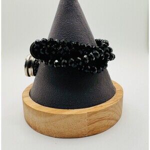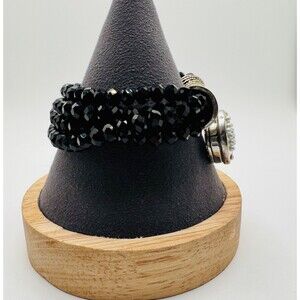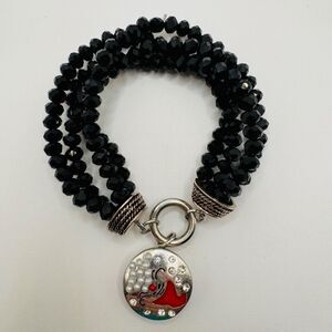 Ginger Snap Santa Dangle Stretch Bracelet Black Crystal Silver Tone