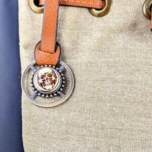 Ginger Snaps Canvas & Faux Leather Bucket Crossbody Bag with Skull Snap