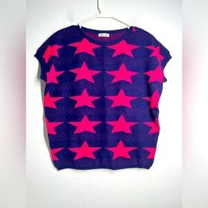 Ginger Soul Stars Print Short Sleeve Crewneck Sweater Size S Blue Pink Oversized