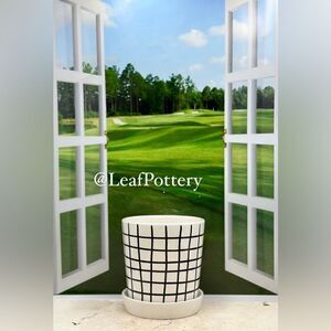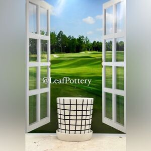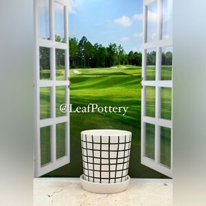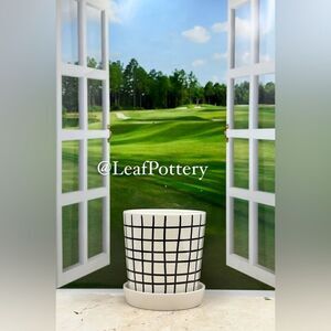 Dimensions: 5”H x 5”W, Opening 4.25”, Weight 1lbs 3.9oz, Type: Barrel Planter, Drainage hole, saucer attached to the planter, Color: White and stripes in Black , Made and hand painted in China , Perfect for Indoor/Outdoor gardening, Don’t forget to dress up your plants 🪴
