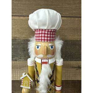 Gingerbread Baker Nutcracker Figurine 15” -flaw. Top of hat has a stain. Please ask any questions and check out my other items. Have a joyful day -NC jloft