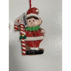Gingerbread Cookie and Elf Candy Cane Ornaments Christmas Decor NEW Set of 2