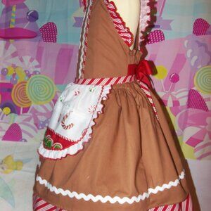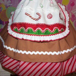 Gingerbread Cookies Christmas Party New Year Party Kids Girl Dress Apron Bow