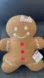 New Cute gingerbread girl shaped decorative pillow with a pink bow. Features red buttons and white accents.