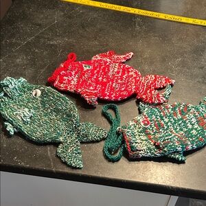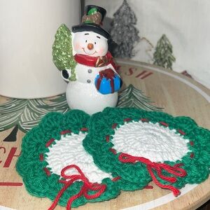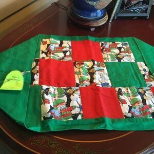 100% cotton flannel fabric hat with a cute green felt bow trimmed with silver rick rack and red / white bakers twine.
