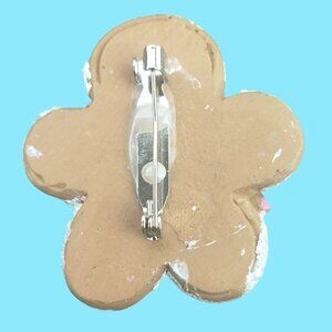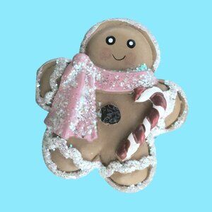 Vintage Gingerbread Man Pin Cookie Brooch is a charming nod to retro holiday charm, perfect for Christmas. It features a playful gingerbread man design, with glitter frosting and a candy cane detail.
