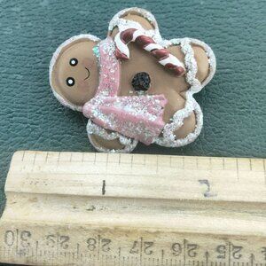 Gingerbread Man Pin Cookie Brooch Holiday Candy Cane Christmas Glitter Jewelry