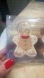 Set of two gingerbread man cookie ornaments. Features white icing details and colorful buttons.