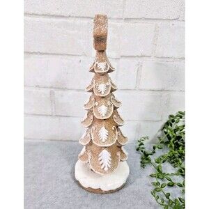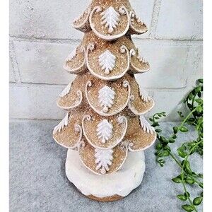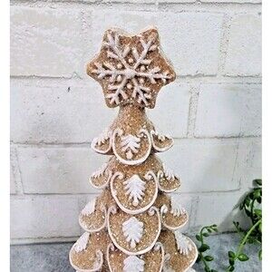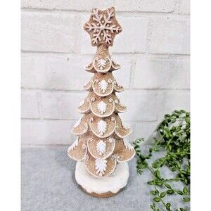 Up for sale is this beautiful Gingerbread Snowflake Glitter Frosted Neutral Resin Christmas Tree 10" NEW