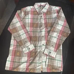 Button down shirt with gingerbread men on it