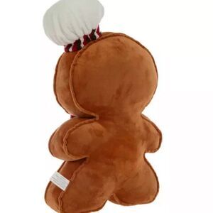 Adorable gingerbread man plush featuring a red bow and festive details. Perfect for holiday decor. Enjoy a friendly cuddle buddy all season long like this Gingerbread Baker Plush! This adorable gingerbread cookie is dressed in baking attire with a tall white chef's hat and a dashing red bowtie. Its soft body is accented with white trimming and swirled buttons and cheeks that make it look realistic. Set this pillow on your couch or bed for a festive holiday accent!