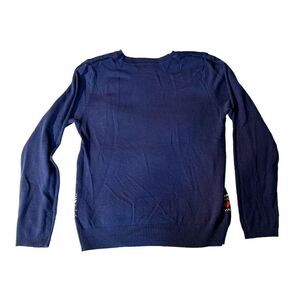Navy blue Christmas Sweater says it plainly “This is my Ugly Christmas Sweater” with grimacing gingerbread boy. Unisex but is sized for L Women. Measures pit to pit: 19 1/2” Length: 23” It is ugly and cool too. Preowned but in good condition.