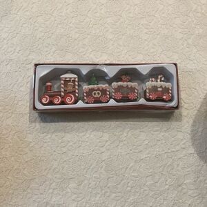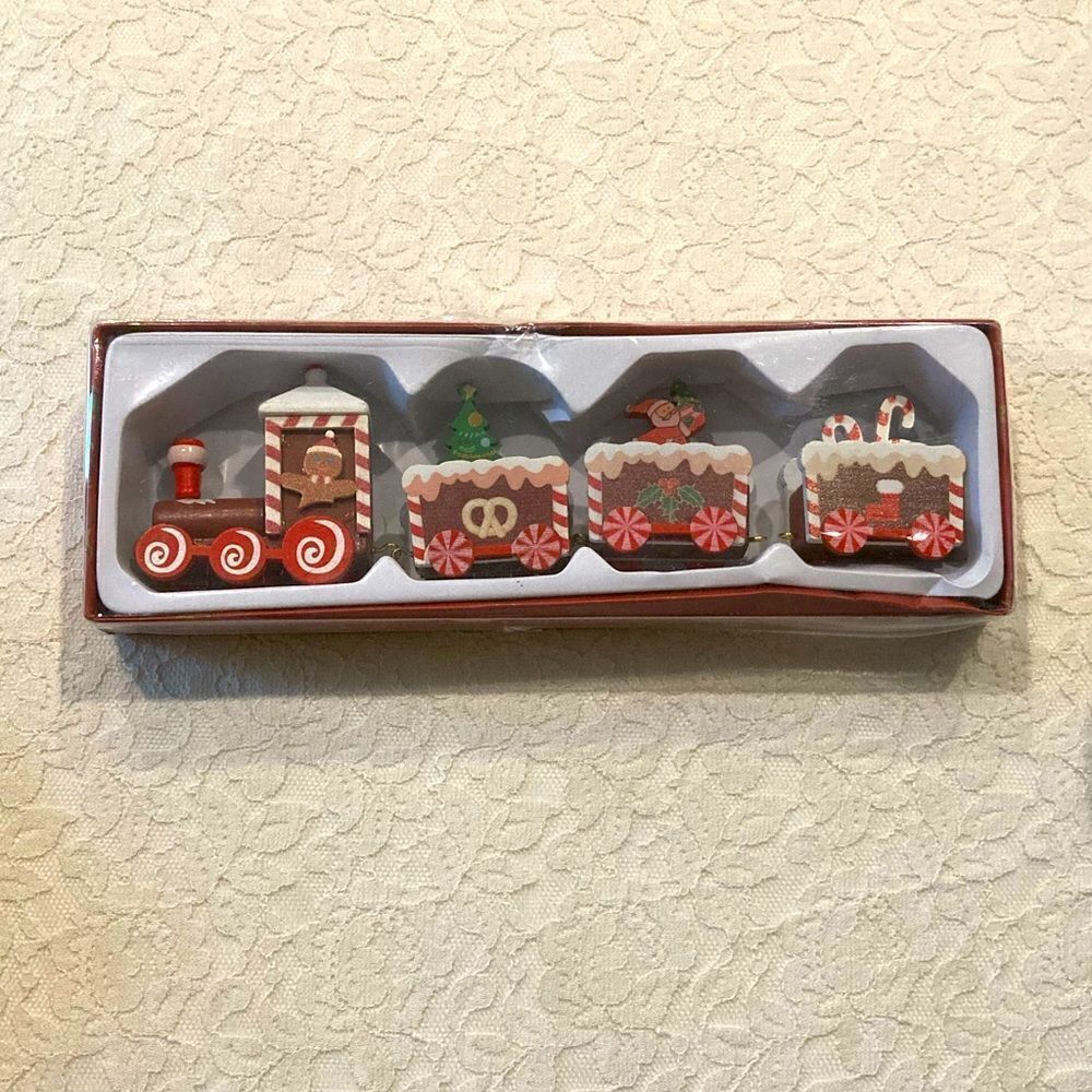 New. Wooden gingerbread toy train. Still in unopened box. Approximately 7.5" long. Makes a great gift! Bundle to get a discount. *Reasonable* offers welcome.