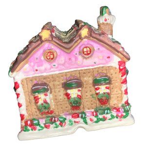 Sweet little gingerbread house looking cake store from the original Greenbrier Gingerfrost Lane 2005 collection. It's beautiful to decorate with by itself or as part of the village . It has a lovely frosted sugar roof that makes it look just like a real gingerbread house!
