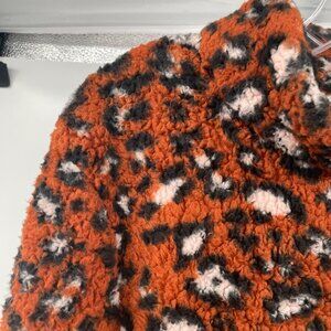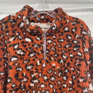 Gingerly Women's Cheetah Print Pullover Fleece Orange/Multi Size L/XL