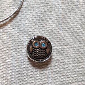 Elegant silver bracelet featuring a colorful owl charm. Perfect for adding a touch of whimsy to any outfit.