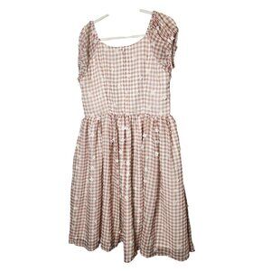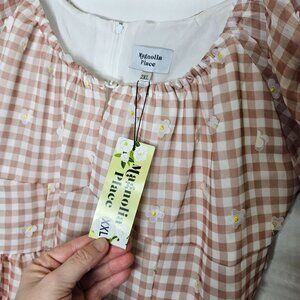 Gingham Checkered Midi Dress Flowers Magnolia Place XXL Short Puff Sleeve Zipper