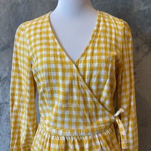 Gingham Cottagecore Feminine Summer Picnic Wrap Pleated Dress Sz M