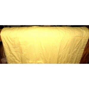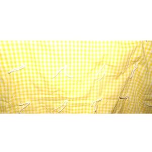 This quilt has been so well cared for and so soft. It's 43.5" x 56.5". Someone made this with the 1970's pattern for Gingham Goose. It is yellow and white gingham fabric on front and back with patches of flowers and hearts in red and blue. The teddy bear is a soft, fuzzy, terry cloth fabric. The trim around the teddy bear has little teddy bears and eyelet lace. It does have some pilling on the back side. Overall, it's in great shape.