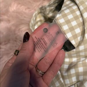 Chic gingham long sleeve crop top in a stylish tan and white pattern. Perfect for casual outings or a night out. Elevate your wardrobe with this versatile piece.