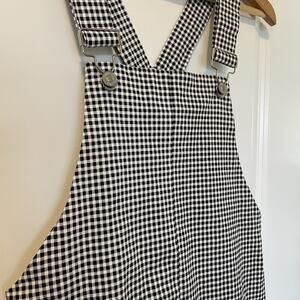Gingham Overall Mini Dress Black White Women's Small Stretchy Casual Grunge 90s