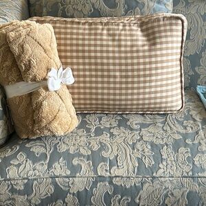 Gingham Pillow and Plush Blanket Set Tan Brown All Season Vintage Ethan Allen