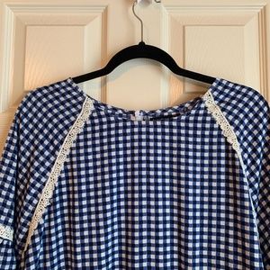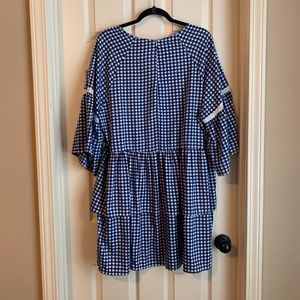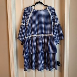 Gingham Print Embroidered Smock Dress