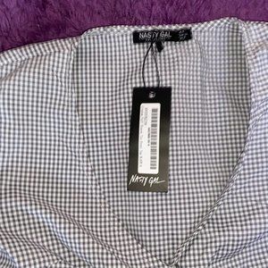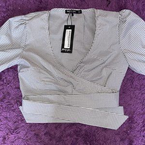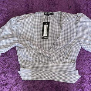 Gingham Puff Sleeve Tie Front Top (BRAND NEW)