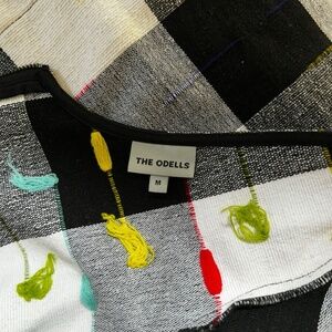 This absolutely classic cropped shirt has so many amazing details: gingham pattern, rainbow details throughout, puffed sleeves, scooped back, and a back zipper closure. Please know that the top was originally constructed with threads from the rainbow detail on the inside, see image with tags.