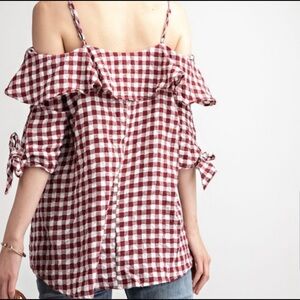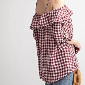 Gingham Ruffle Blouse Top