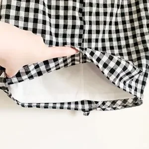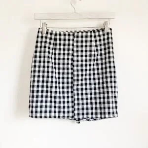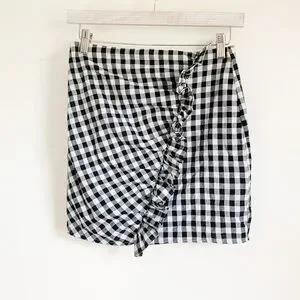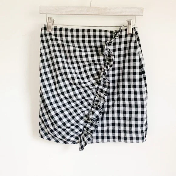 New without tags! Gingham Ruffle Mini Skirt. Size small, fits closer to an XS. Partial zip back closure. Material is Not stretchy at all.