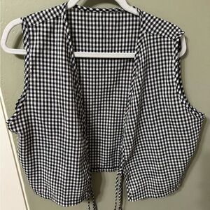 Cute black and white gingham set with tie front top.