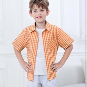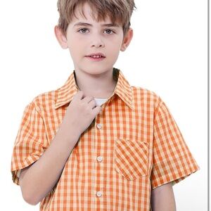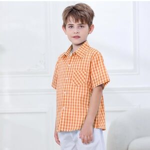 Gingham Short Sleeve Shirt in Orange and White (056) boys