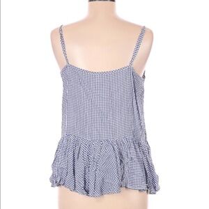 Lightweight gingham printed blue and white tank top with adjustable straps 100% rayon