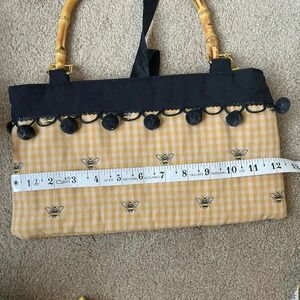 Gingham Yellow Bag with Embroidered Bees and Bamboo Handles