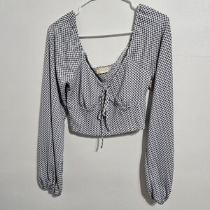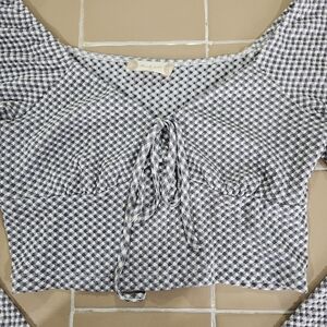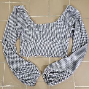 Gingham crop top with long sleeves. Elastic at wrists and shoulders. Could be worn off the shoulders. Size M. Very stretchy.
